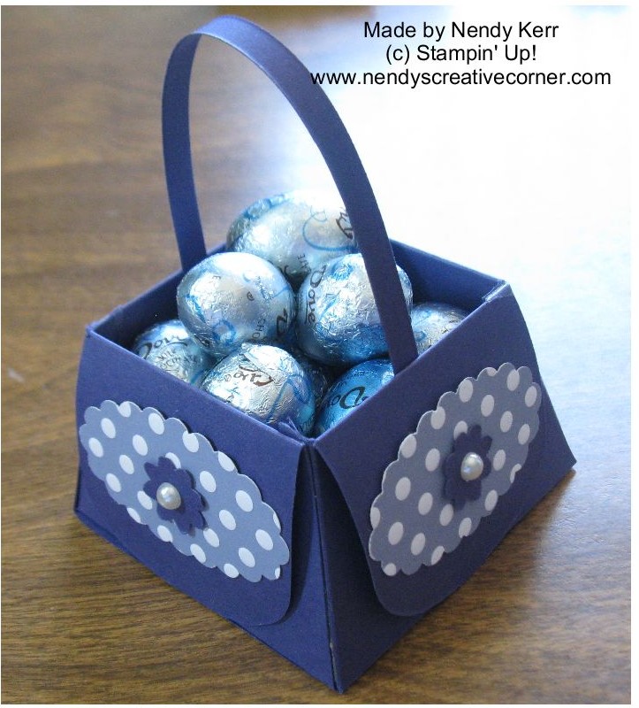 This is a quick little basket to make with the Petite Purse Bigz L Die that is available until April 30th, then will be in the new 2012 Stampin’ Up! catalog.