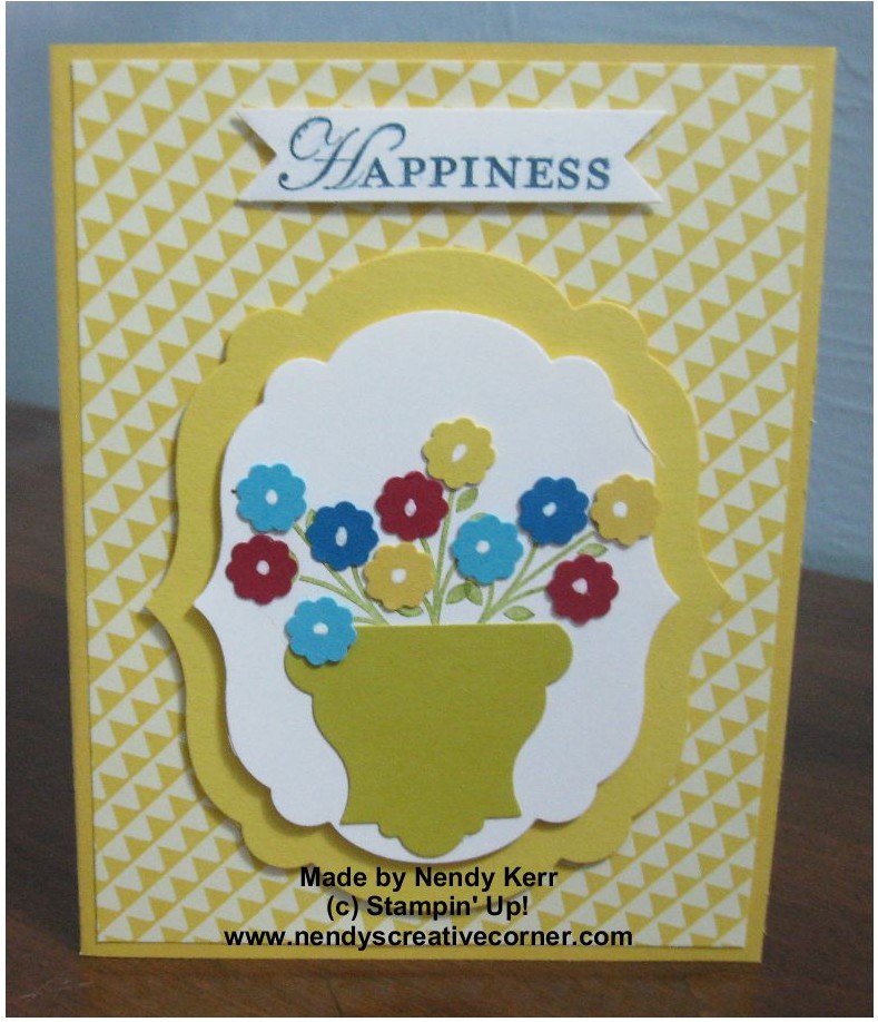We made this card at my Stamp Class last Friday. It was relatively easy to make. We did get to use the Big Shot quite a bit using the Labels Collection Framelits, a NEW *Bitty Banner Framelit, and one of the NEW *Apothecary Accents Framelits (well, half of it) that will be available *June 1st. Enjoy making this card! Feel free to use some of your DSP stash to create different looks for this card.