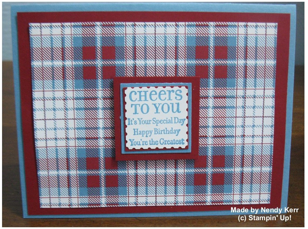 I made this birthday card using the Frostwood Lodge Designer Series Paper along with Cherry Cobbler and Marina Mist card stock.  Enjoy!