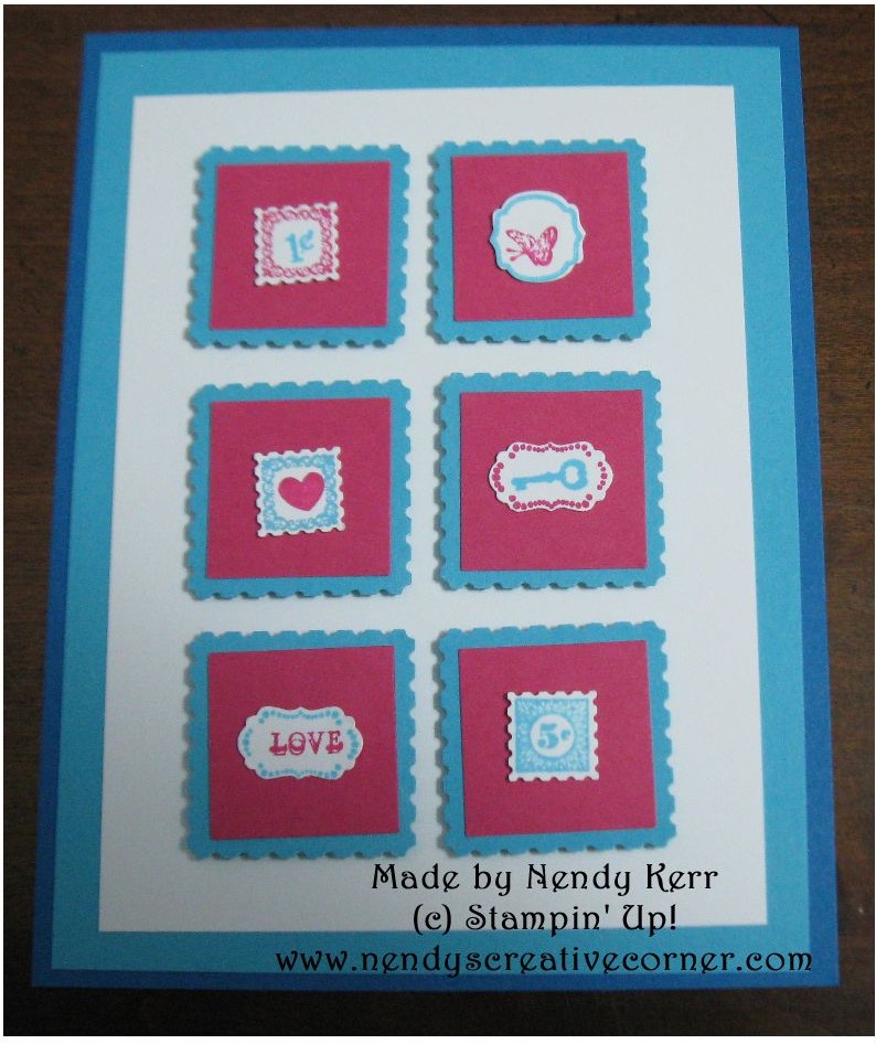 I loved the Little Labels Punches and the Lovely Little Labels stamps as soon as I saw them. They just barely came to live at my house though. I wanted to try them out with the Postage Stamp Punch. I think the result was good. If you want to step it up a bit, you could use an embossing folder on the Whisper White card stock layer.