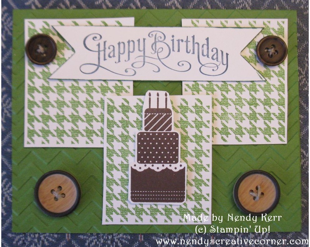Both my Son and Son-in-Law have Birthdays shortly after Christmas. Since I can’t seem to make the same card twice, here are two versions of Birthday Cards for these men in my life. Of course I had to use some Spring 2013 Catalog items! Since these cards were mailed a while ago and because I didn’t take notes I don’t remember the exact colors I used. So use what ever color is your man’s favorite when you make this card for him.