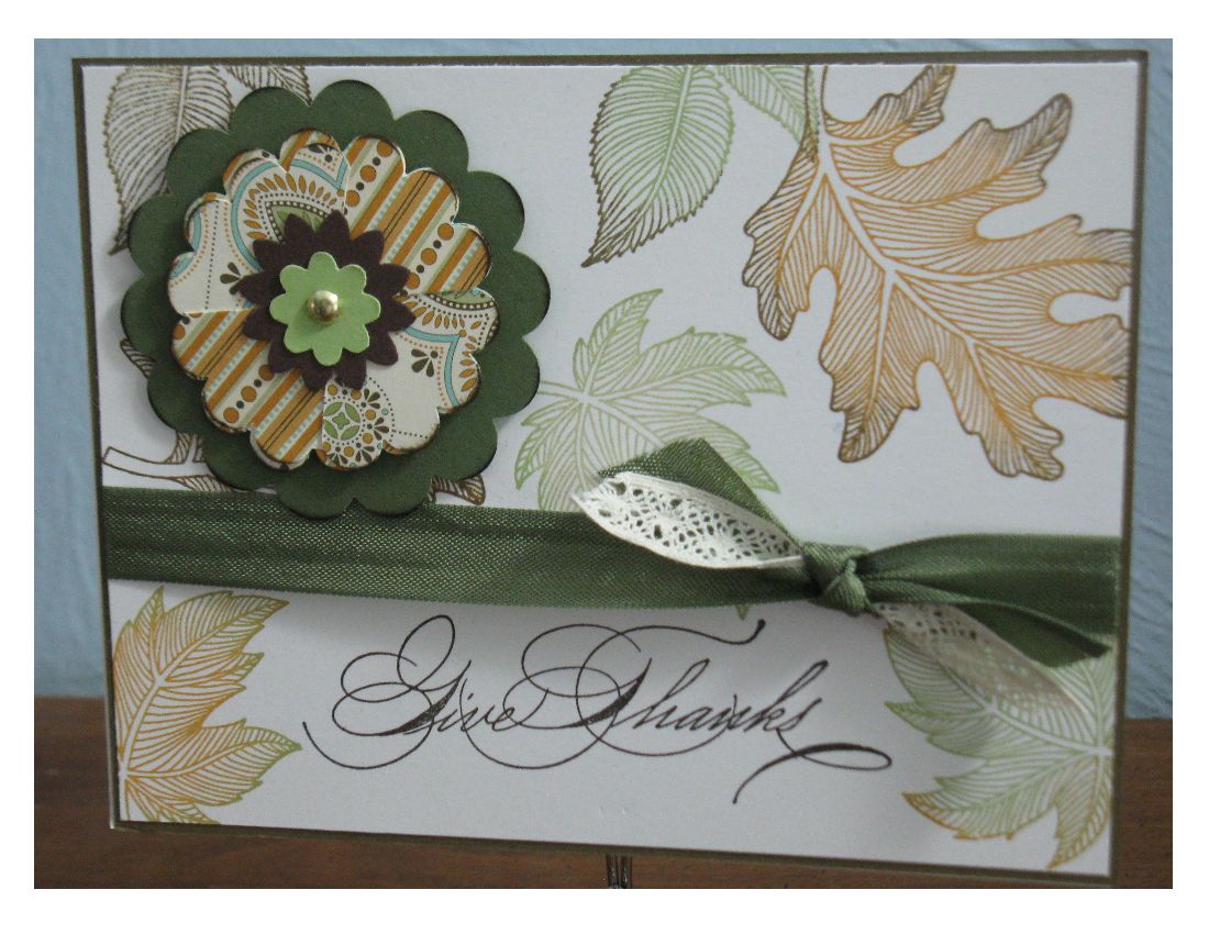 Here is a Thanksgiving card we made at my last class. I love looking at Fall leaves, even though I don’t get to see very many where I live.