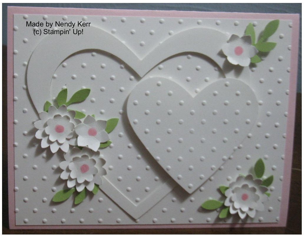 I saw a Wedding card similar to this on Pinterest not made with Stampin’ Up! products. I thought I could remake it using only Stampin’ Up! supplies. I think it turned out well and at least has hearts and flowers on it like the original did. Oh well, I am not very good at following recipes well when I cook either.